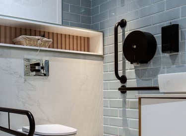 We designed a stylish, modern bathroom interior for the Lebanese House restaurant in Winchester, combining elegant finishes with functional design. A clean, inviting space that complements the restaurant’s warm atmosphere.